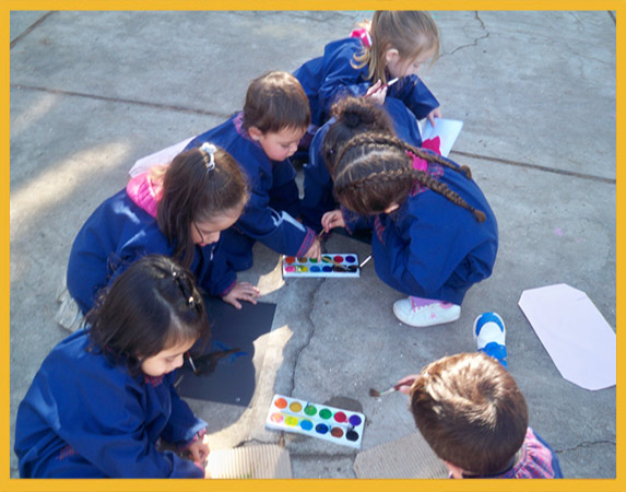 Sala Naranja: Este es su último año del jardín, con ellos ya vengo compartiendo como preceptora mi segundo año. Al dibujar, pintar o modelar, el niño trabaja con materiales y herramientas. Explorando comienzan a recorrer las posibilidades que estos les brindan para sus realizaciones. Junto a la Srita Soledad pudimos enriquecer la observación y la producción conociendo a Jackson Pollock